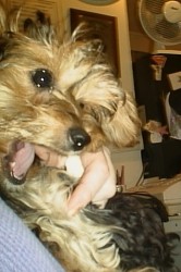Ich hab ja morgens, nach dem Aufstehen, immer so eine Art Atemnothusterei. Bei dem einen Tierarzt bekam ich dann nur meine letzte Impfung für dieses Jahr. Nun bin ich gegen viele Krankheiten immun. Gegen diese Atmennot habe ich aber nix bekommen. Wäre unbedenklich. Hmmmm.... Aber Frauchen ließ es keine Ruhe und ging dann nochmal am 21.9. zur einer anderen Ärztin. Die war nett. Da war so ein Mädchen, die hat mit mir getobt. Dann wurde ich mit so einem runden kaltem Ding abgehört. Meine Herzklappen würden gut funktionieren. Was dann folgte, mag ich gar nicht schreiben: DA HAT MAN MIR DOCH WIEDER WAS IN DEN POPO GESTECKT !!! Trotz jaulen, ging das Ding nicht raus. Erst als es piepte. Die Ärztin sagte dann: normale Temperatur. Ich hab dann dort mal so gehustet, wie ich das immer morgens gemacht habe und so konnte sie sich das mal anhören. Man nahm mich dann in so einen Raum