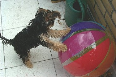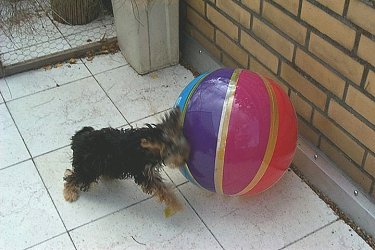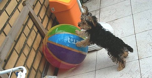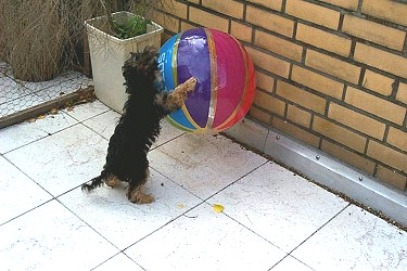 Frauchen hat mir da so einen Ball gegeben.... |
