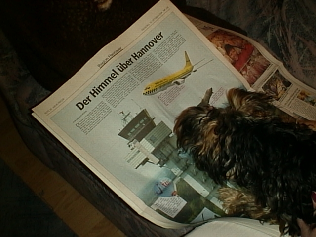die Flugzeuge sind in weiter Ferne zu sehen.Frauchen sagte immer, wenn wir dort noch wohnen würden,wo wir vor kurzem noch gewohnt haben(also Herrchen und Frauchen und Püppi), dann würden wir die Flugzeuge fast füttern können. |