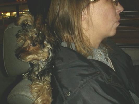 ruhig, zappelt nicht und schaut sich die Gegend an. Braune Autos werden